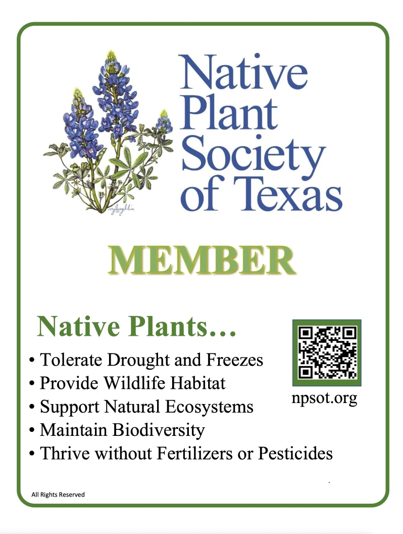 Welcome to our online store. All purchases support the Native Plant Society of Texas. Gardening with native plants is essential to the survival of our local wildlife and ourselves!